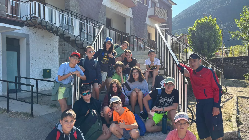 El grupo de Gimnasia, Ajedrez y Voley, también tenía un planazo por delante. Excursión a Castiello de Jaca por la pista del camino de Santiago, para terminar bañándonos en las Termas.